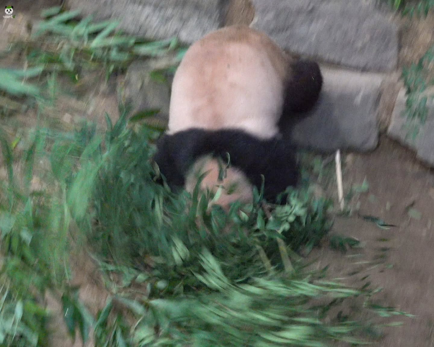 루이바오가 다시 현장에 돌아오더니 수습을 하려는 듯, 곰손으로 뿌리 부분을 슬쩍 누르는 게 아니겠어요? 수습될 기미가 보이지 않자 눈치를 보는 것처럼도 보였는데요.