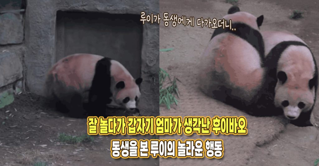 잘 놀다가 갑자기 엄마가 생각난 후이바오, 동생을 본 루이의 놀라운 행동