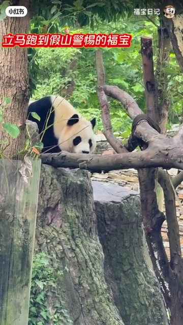 사실 푸바오는 이전에도 놀라면 가산 위로 피하곤 했어요. 이런 행동은 푸바오가 이전부터 보여왔던 대처법이었습니다.