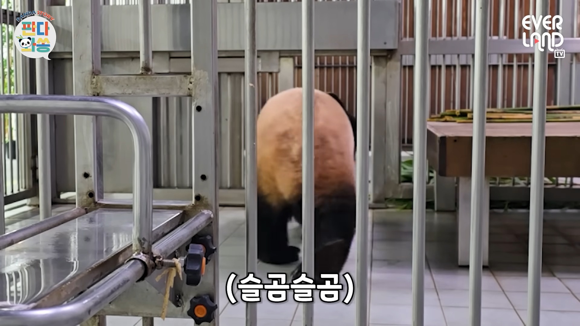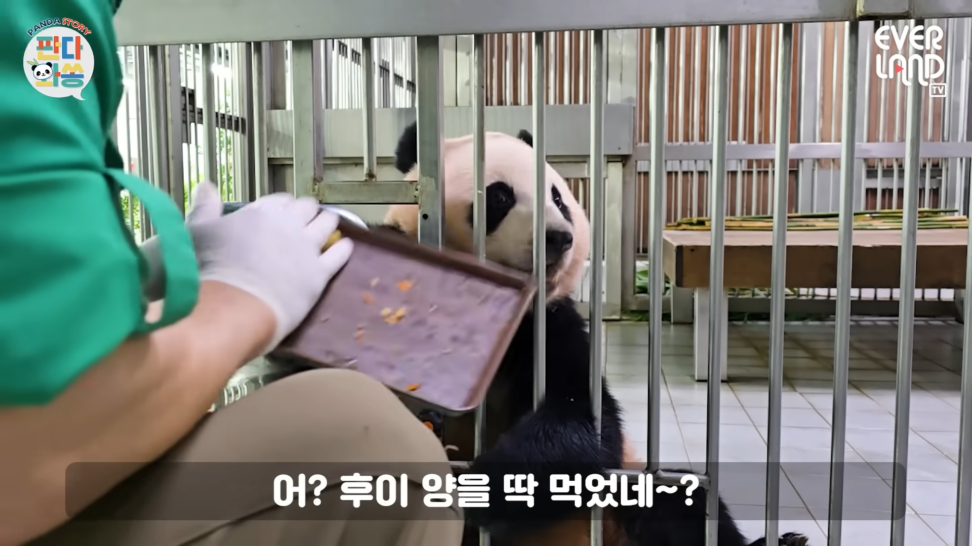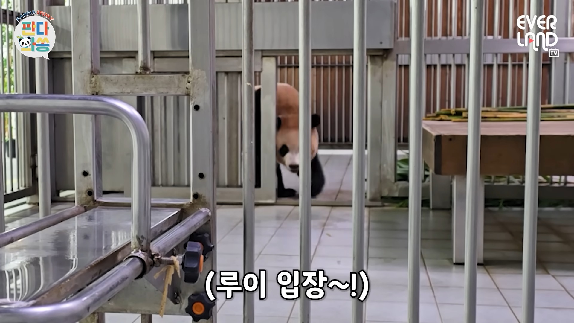 그 말에 후이바오는 자리에서 일어나 슬곰슬곰 언니가 있는 옆방으로 이동했는데요. 후이가 방으로 들어서자마자 이어진 “루이 이리 와”라는 말에는 루이가 훈련을 하던 방으로 입장하는 게 아니겠어요?