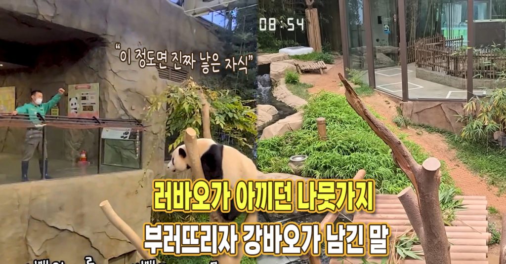 강바오는 판다들이 식물과 조화롭게 지낼 수 있도록 판다월드 조경에 힘을 쏟고 있는데요. 이번에 부러진 가지는 러바오 쉘터 나무에서 유일하게 남은 가지였던 터라, 강바오는 억장이 무너진 듯했어요. 하지만 뒤이어 나온 뜻밖의 말들은 사람들이 그의 진짜 속마음을 느끼기에 충분했습니다.