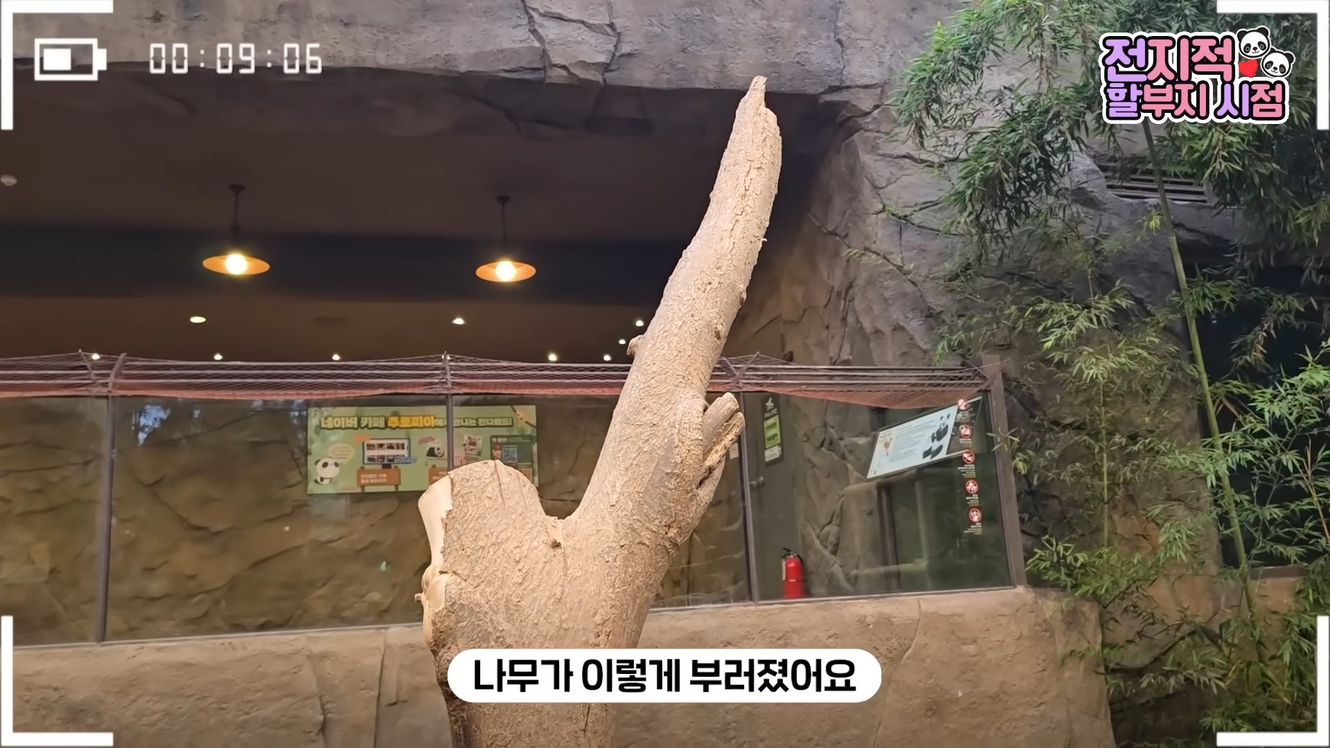 “러바오가 올라가서 놀던 나무인데, 러바오가 장난을 치다가 나무가 이렇게 부러졌어요. 러바오가 나무에 올라가는 모습이 너무 예뻤는데…”