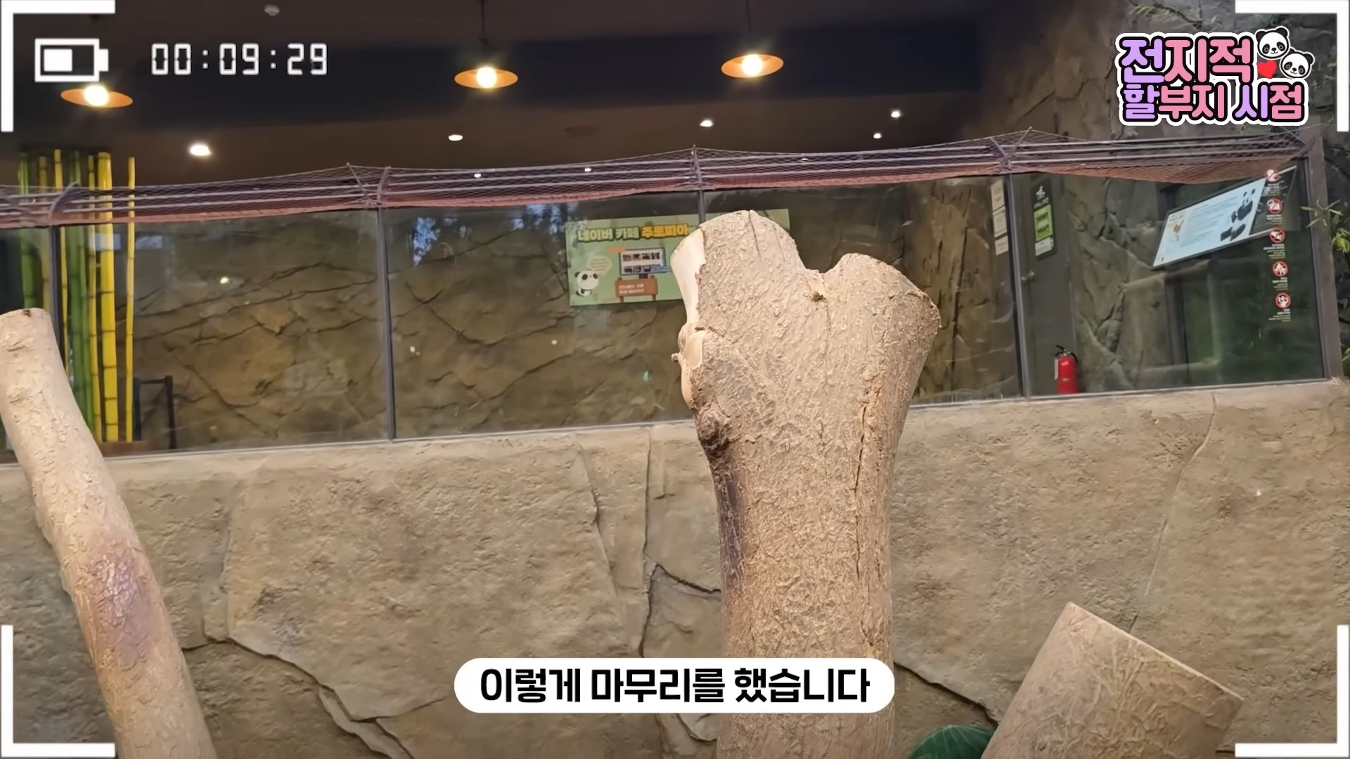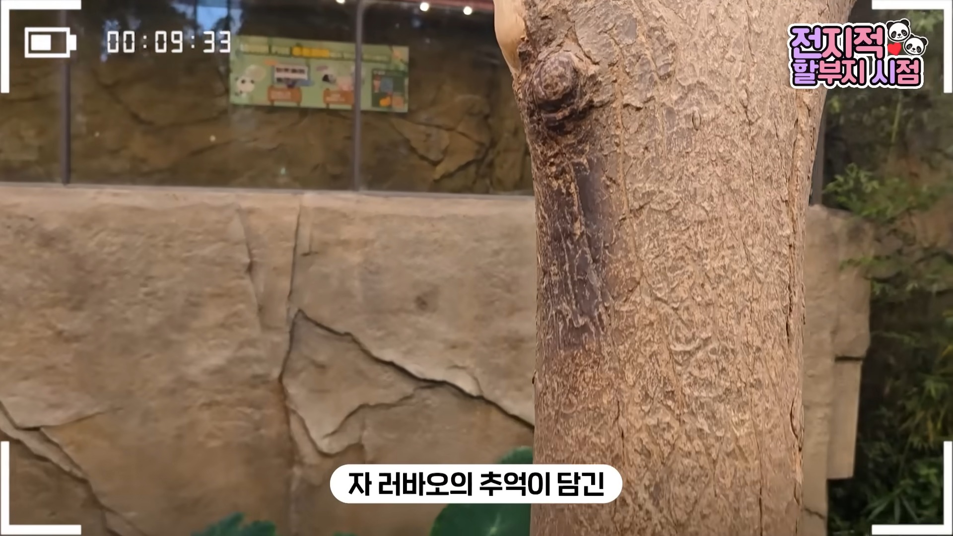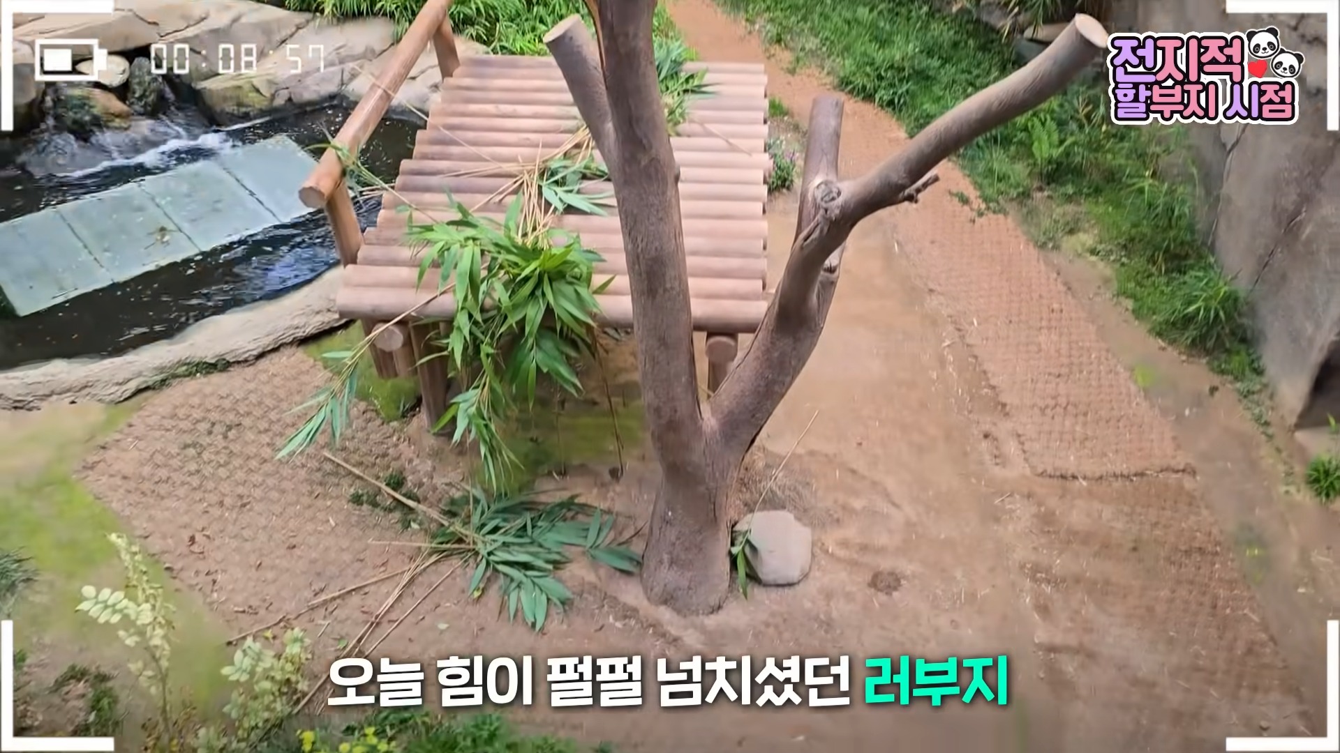 나무가 부러진 게 아쉬운 이유는 단 하나였습니다. 오래 관리해온 나무라서가 아니라, 러바오가 한국에 온 뒤 오랜 시간 함께한 추억 가득한 나무이기 때문이었죠. 그는 계속해서 “러바오의 흔적들이 이렇게 많습니다”라며 러바오가 남겨온 흔적들을 카메라에 담았습니다.