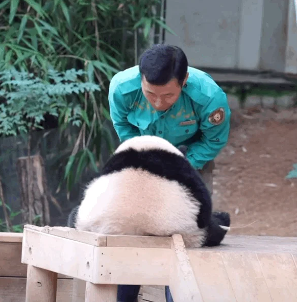 이때, 피곤한 상태임에도 팍! 뿌리치지 않고 정중하게 손짓으로 거절을 표하는 아이바오! 비슷한 장면은 몇 번 더 포착됐고 모두 아이바오의 섬세함에 놀라고 말았죠.