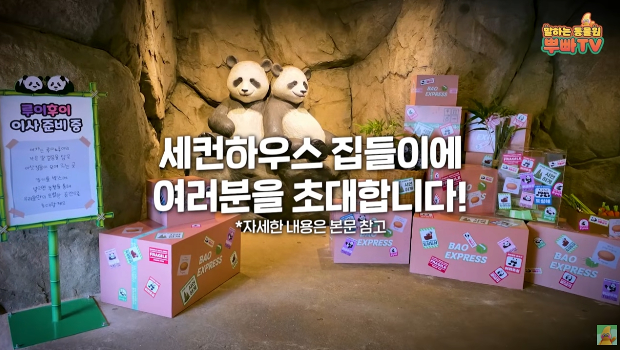 또 17일 말하는동물원뿌빠tv 역시 영상을 통해 세컨하우스 오픈과 이벤트 공지를 전했습니다. 영상에 직접 등장한 강바오 강철원 주키퍼는 “바오 팬들을 위해 즐거운 이벤트를 준비했다. 루이후이가 이사갈 세컨하우스에 뿌딩이 친구들만 오픈하기 전에 먼저 초청할 예정이다”라고 전했습니다.