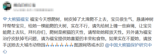 최근 불거진 것은 또 다시 푸바오 방사장에 있는 나무 문제였다고 하죠. 얼마 전에도 팬들이 탄식하며 나무에 대해 선수핑 기지에 따지는 일이 있었어요.