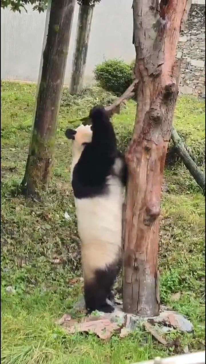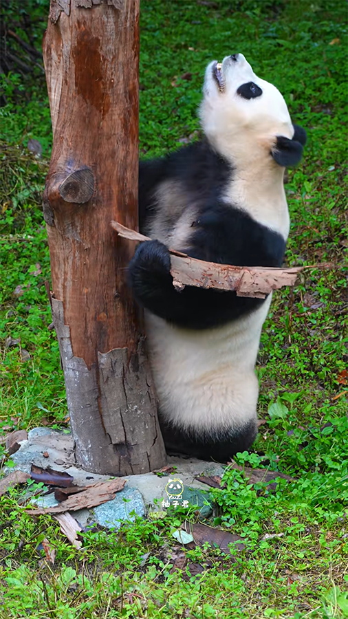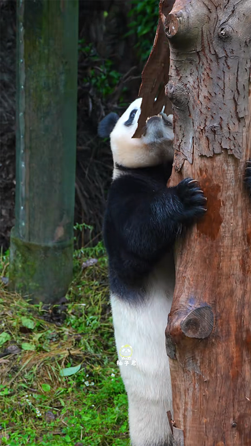 이날 푸바오가 나무를 오르려고 시도한 건 이때뿐만이 아닙니다. 하지만 시도를 할 때마다 나무껍질이 후두둑 벗겨져 오를 수가 없었지요. 위쪽을 바라보는 푸바오의 모습은 팬들을 안타깝게 했는데요.