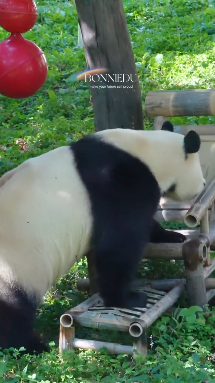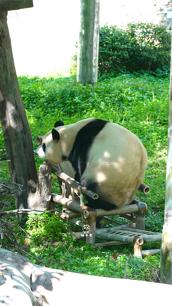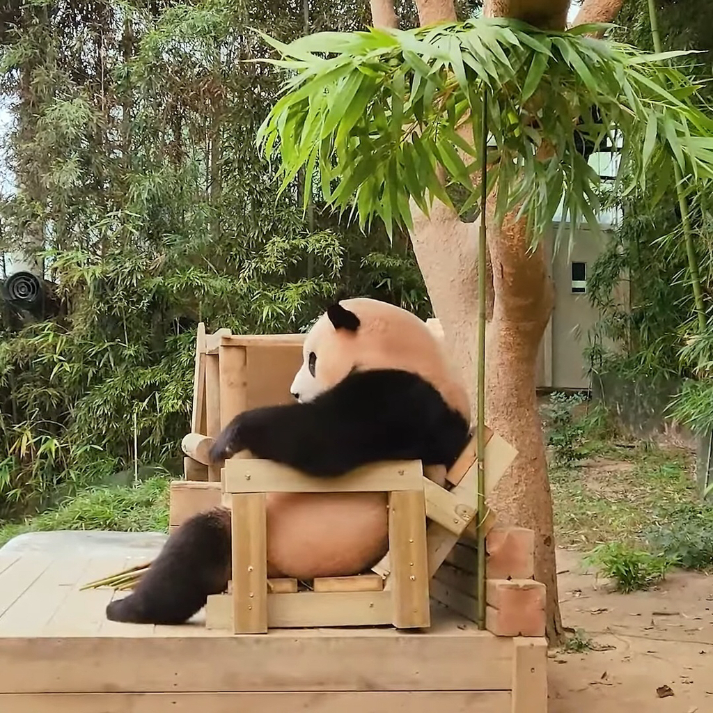 하지만 팬들의 마음을 뭉클하게 한 지점은 따로 있었습니다. 푸바오가 똑똑하게도 보자마자 이게 등을 대고 앉는 용도의 ‘의자’라는 걸 알아보고 ‘앉으려’ 했다는 점이지요.
